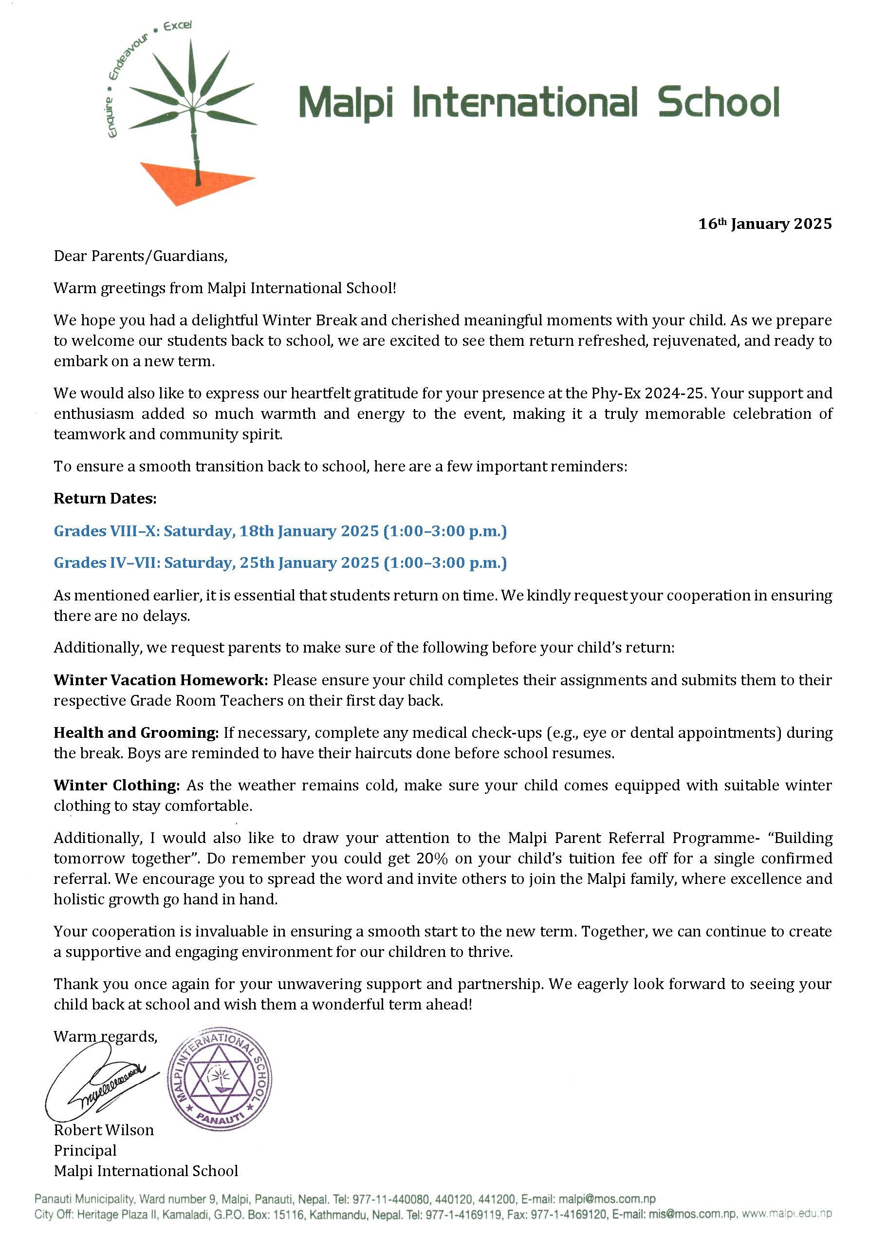 Thank you once again for your unwavering support and partnership. We eagerly look forward to seeing your child back at school and wish them a wonderful term ahead!